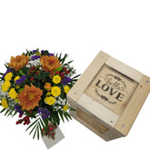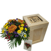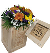 Blumenstrauß in Holzkiste mit Erlebnisfaktor